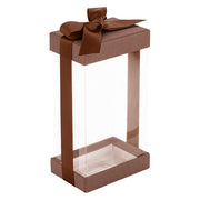 This chic brown plastic gift box is designed to impress. With a crystal-clear top, a rich brown base, and a matching ribbon, it’s perfect for bakery display or refined gift-giving.