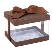 Plastic Gift Boxes Brown 5X4X3.5" 6 Pack Bakery Boxes With Base Lid & Ribbon