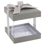 Add subtle sophistication to your packaging with these sleek gray gift boxes. Designed to frame a single treat or gift in its best light, each box combines form and function with a transparent lid, sturdy base, and a soft gray ribbon. Perfect for upscale gifting or minimalist presentation.