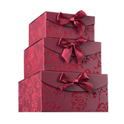 Burgundy Small Swirl Nesting Elegant Christmas Gift Boxes - Pack of 3