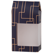 Compact blue gift boxes with windows, ideal for smaller treats or favors. Their neat size and modern look make them perfect for party giveaways.
